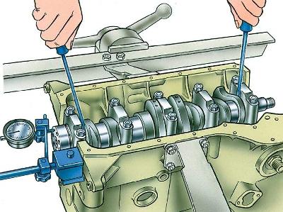 Операции по сборке двигателя следуют в обратном порядке операциям его разборки и производятся следующим образом. - Установка вкладышей коренных подшипников в постели блока цилиндров; - Установка коленчатого вала в блок цилиндров; - Установка упорные полукольца; - Установка вкладышей в крышки коренных подшипников; - Установка крышек коленчатого вала; - Установка масляного насоса; - Установка крышки заднего сальника коленчатого вала вместе с новым сальником; - Установка шатунов в поршне с запрессовкой поршневых пальцев; - Установка стопорных колец поршневых пальцев; - Установка на поршень компрессионных и маслосъёмных колец; - Установка поршней с шатунами в цилиндры с помощью специальной оправки; - Установка крышек шатуна с затяжкой с соответствующим моментом; - Установка маслоприёмника; - Установка маховика; - Установка масляного картера; - Установка прокладки головки блока; - Установка головки блока цилиндров и затяжка болтов головки блока по заданной схеме с соответствующим моментом; - Установка распределительного вала; - Установка ремня или цепи привода распределительного вала; - Установка впускного и выпускного коллекторов; - Установка навесных агрегатов; - Установка сцепления; - Установка коробки передач; - Регулировочные операции; - Монтаж навесного оборудования; - Испытание (обкатка) ремонтируемого узла или агрегата; 8. Установка двигателя на автомобиль, его регулировка и обкатка. Установка двигателя на автомобиль проводиться в обратном порядке процессу его демонтажа с учетом всех маркировок электрических соединений и трубопроводов. В зависимости от конструкции двигателя и его расположения двигатель может устанавливаться в сборе или по частям. Т.е. сначала устанавливается блок цилиндров в сборе, на который монтируется головка блока цилиндров после чего следуют дальнейшие операции по сборке см. п.7. После установки двигателя следуют регулировочные операции, которые также зависят от конструктивных особенностей двигателя. Например, на двигателях, снабженных гидротолкателями не нужно проводить регулировку клапанов механизма газораспределения. В классическом исполнении варианте возможны следующие регулировочные операции: - Регулировка зазоров клапанов механизма газораспределения (ГРМ); - Регулировка угла опережения впрыска для дизельных двигателей или угла опережения зажигания для бензиновых двигателей; - Регулировка натяжения ремня ГРМ, а также сервисных ремней; - Регулировка оборотов холостого хода; - Регулировка элементов трансмиссии; - Прочие регулировочные операции; Для двигателей, имеющих ЭБУ имеет смысл подключить диагностический сканер с целью определения фактических параметров. Последним этапом ремонта двигателя является обкатка двигателя. Обкатка необходима для приработки трущихся деталей двигателя после его ремонта. Поэтому соблюдение правил обкатки крайне важно для сохранения ресурса двигателя. Правила обкатки ремонтного двигателя аналогичны правилам обкатки нового двигателя, которые описаны в руководстве по эксплуатации. В ремонтных организациях может проводится холодная обкатка, с помощью приводного электродвигателя, а потом обкатка на заведенном двигателе. Вначале двигатель работает на холостых оборотах, а потом под небольшой нагрузкой. При этом проводится постоянный контроль за по